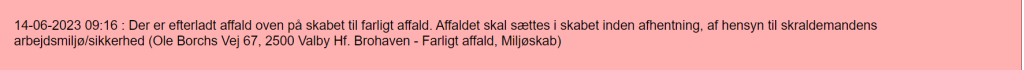 Da jeg var inde og for at downloade afhentningskalender fremkom denne besked;