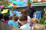 -Børneaktiviteter om dagen. (Lene og Mette laver guirlander til teltet)